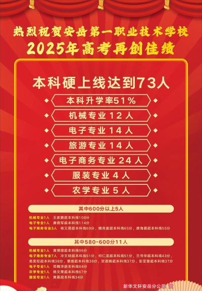 四川省安岳第一职业技术学校开设的专业:电子商务、汽车运用与维修、电子电器应用与维修、机械加工技术、旅游服务与管理、果蔬花卉生产技术。