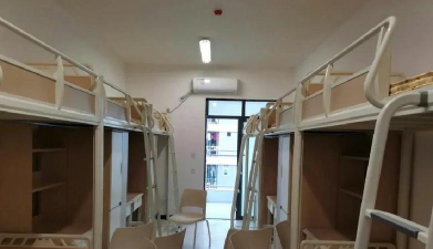 学生宿舍是标准的6-8人间,有独立的卫浴,独立阳台,有空调、直饮水热水器、每幢楼的负一层都有公共浴室、热水房、商铺,在宿舍内还安装了电话、网络接口、鞋架、毛巾架等。