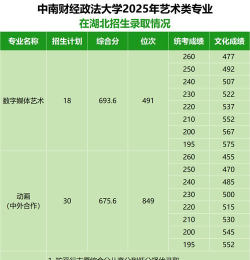 中南财经政法大学往年美术类各省录取分数线汇总