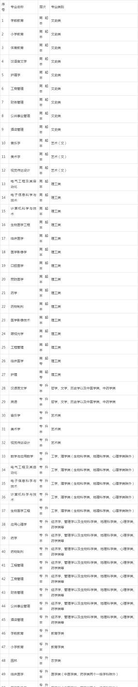 电气工程及其自动化(专业代码:080601H)、护理学(专业代码:101101H)、数据科学与大数据技术(专业代码:080910TH)。