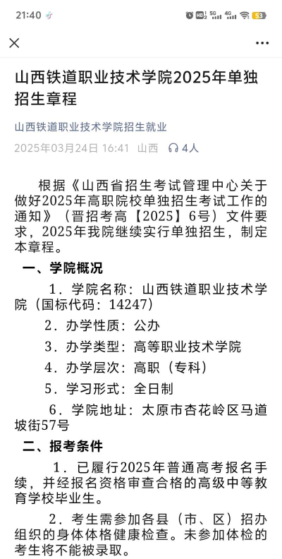 400分能上中专铁路学校。中专铁路学校对考生的分数要求相对较低,即使是400分,也能选择不少好的铁路学校。虽然有的本科院校分数要求较高,但中专铁路学校的录取分数线通常较低,尤其是对于中职学校,对考试分数没有严格的要求。