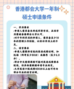 香港一年制硕士多招收管理项目,如项目管理、工商管理、高级工商管理,课程适用中高层管理人士学习。院校一般对学历、工作经历有要求,具体条件自主设定。下面是香港都会大学一年制硕士的申请条件:
