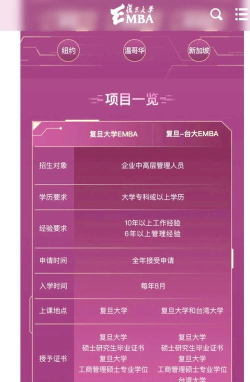 emba即高级管理人员工商管理硕士,复旦大学管理学院、泛海国际金融学院推出本项目,专为高层管理人员开设的高端学位课程,着力培养引领经济与社会发展的企业领袖。复旦是国内较早设立工商管理教育体系的高校,项目招生至今得到了广泛认可。