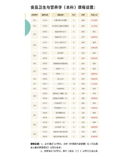 《营养学基础》、《临床营养学》、《食品卫生学》、《食品工艺学》、《食品毒理学》、《烹调学》、《生理学》、《生物化学》、《流行病学》部分高校按以下专业方向培养:食品质量与安全。