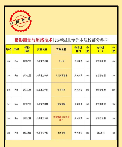 接续普通本科专业举例: 遥感科学与技术、地理国情监测、地理空间信息工程、测 绘工程