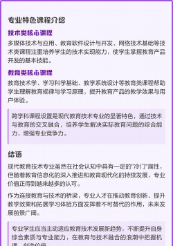 现代教育技术主要研究计算机科学的基本理论知识,具备扎实的教学与应用技能,具有教学媒体和教学系统的设计、开发、运用和管理能力,能胜任中小学计算机科学教育与研究工作。例如:小学信息技术教育教学、多媒体教学课件设计与制作、校园网组建与维护和教学设备的维护与管理。