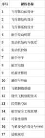 《飞行器总体设计》、《飞行器结构设计》、《飞行器系统设计》、《航空发动机原理》、《发动机结构与强度》、《发动机控制》、《适航验证与审定技术》、《适航管理工程》、《航空安全工程原理》、《可靠性原理》