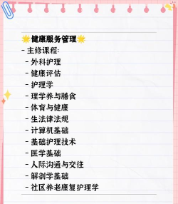 健康教育与健康促进,健康传播,健康状态与风险评估,健康干预方法,健康大数据分析,公共营养,健康心理学,健康服务与营销、危险源辨识与安全评价、职业健康安全管理体系、环境检测实务、环境治理实务等、人体结构与机能、健康评估(技术)、健康管理、职场压力管理实务等。