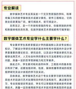 "新媒体艺术专业通常以当下最新的技术手段去提供传统艺术所无法比拟的多维度感官体验,通过视觉、听觉甚至触觉、嗅觉等多种方式创造出浸入式的互动作品的专业。例如:在互联网新媒体企业、传统媒体新媒体部门、专业院校、设计机构等单位从事和媒体相关工作的高级专业复合型人才。