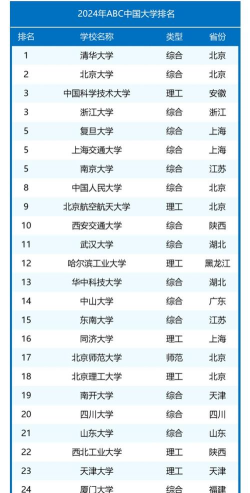 2024中国一线城市大学ABC排名