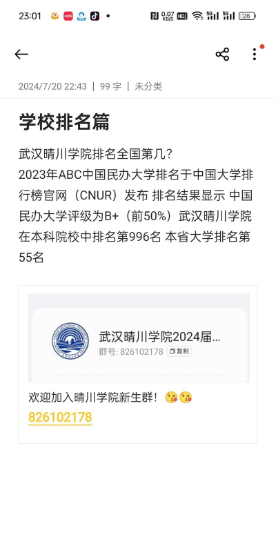 武汉晴川学院:2022年最低分461分,位次为138513名。