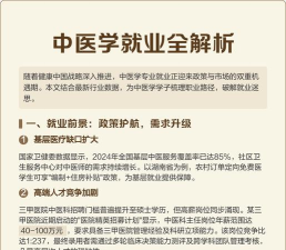 就业前景:主要到各级中医院、中医科研机构及各级综合性医院等部门从事中医临床医疗工作和科学研究工作。