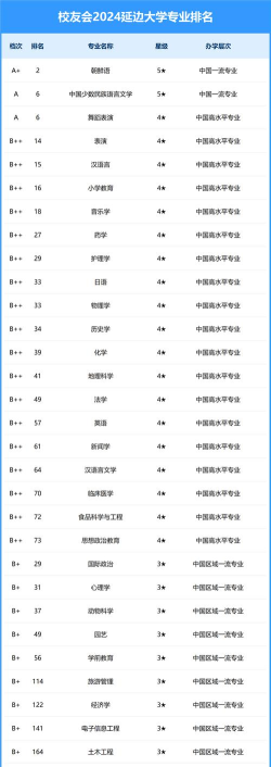 根据提供的信息,以下是2024年延边大学的一些王牌专业和它们的排名情况: