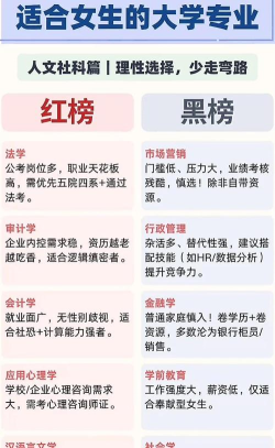 选择专业时,女生应该根据自己的兴趣、能力以及职业规划进行综合考虑,同时也要关注专业的就业情况和未来的发展趋势。希望这些信息能对你有所帮助,