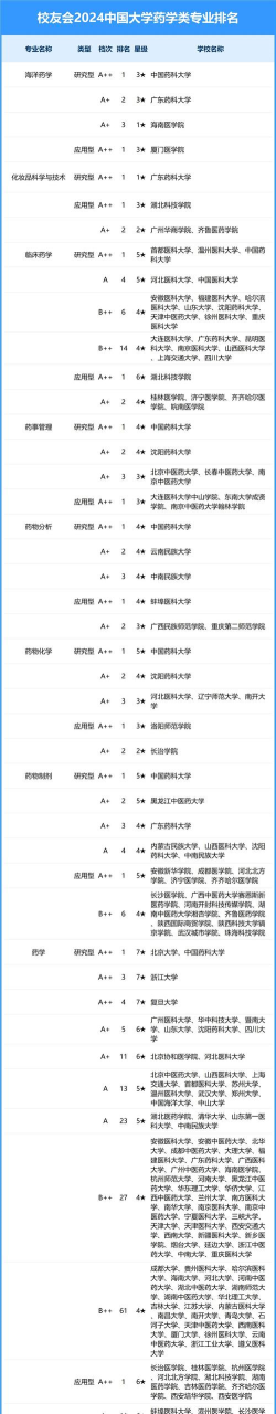 药学:中国三星级学科(3★),区域一流学科,全国第107名。