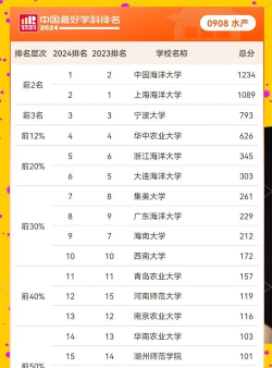 根据提供的信息,以下是2024年中国大学水产专业(包括水产养殖学专业)的排名情况:
