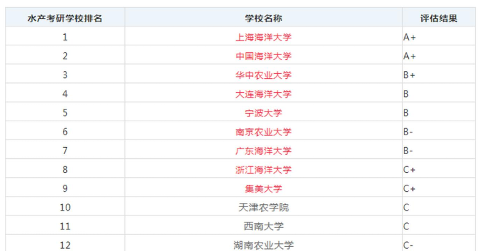 大连海洋大学、 浙江海洋大学、 集美大学、 天津农学院等也有不错的排名。