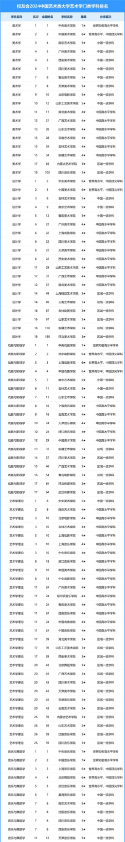 根据提供的信息,以下是2024年内地艺术专业排名的部分情况: