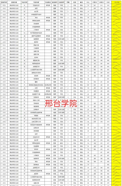 根据提供的信息,以下是2024年邢台学院的专业排名情况: