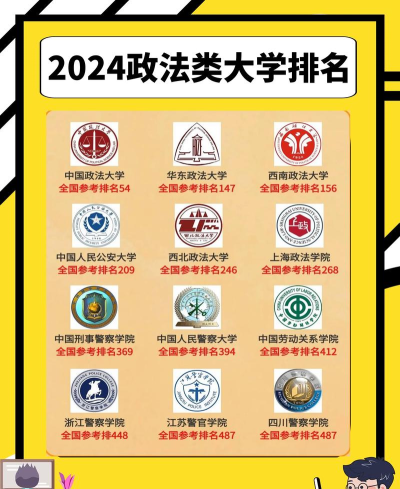 根据提供的信息,以下是2024年政法类优势专业的排名情况: