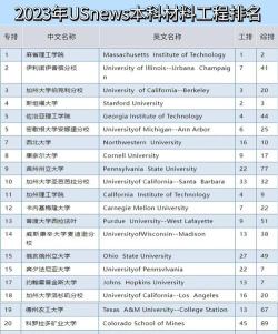 根据最新的2024年USNews美国材料工程专业排名,以下是部分顶尖院校的排名情况: