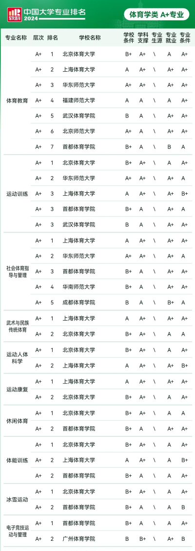 根据提供的信息,以下是2023年运动训练专业排名的部分情况: