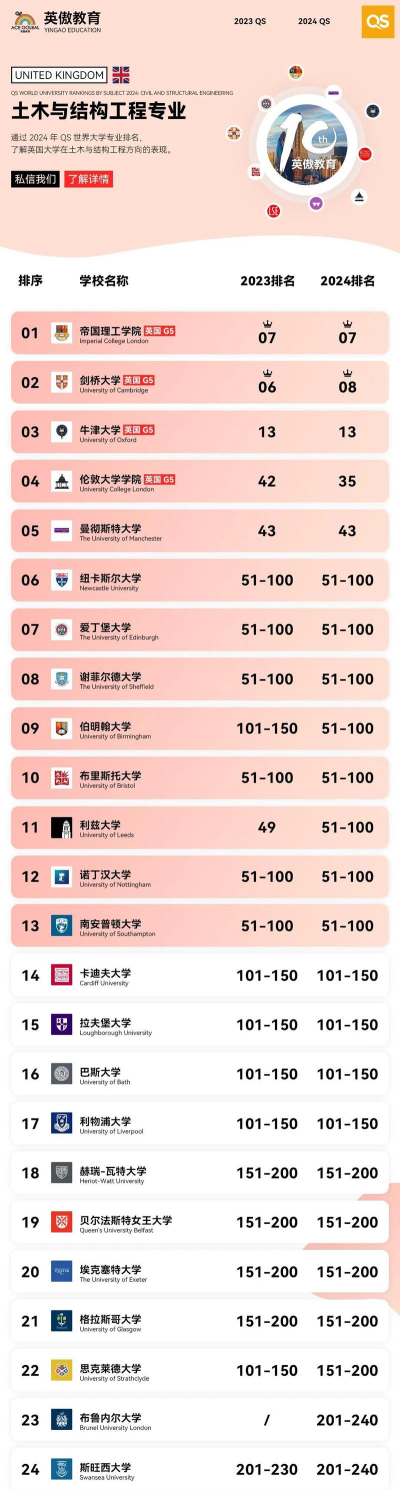 根据提供的信息,以下是2024年土木工程学科的世界大学排名情况: