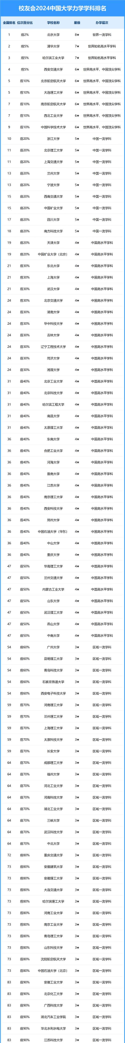 根据提供的信息,以下是2024年中国大学工程力学专业的排名情况:
