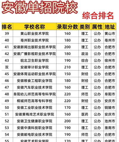 以上信息基于2023年校友会发布的安徽省大学排名数据。排名情况可能会随着时间和不同评价机构的标准有所变化,请以最新发布的官方信息为准。