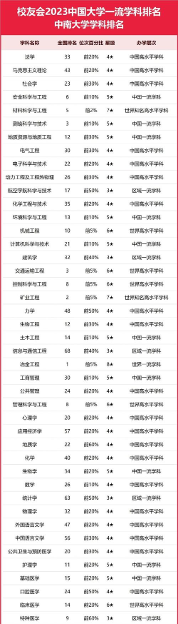 中南大学是中国著名的综合性大学,拥有多个优势专业。以下是一些中南大学的顶尖专业排名信息: