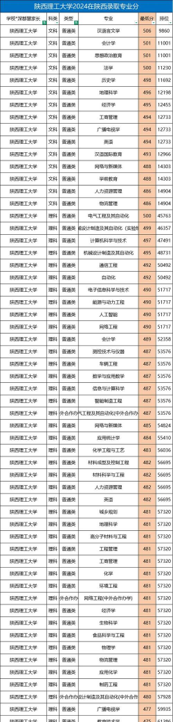 根据提供的信息,以下是陕西理工大学在2024年理科专业的排名情况:
