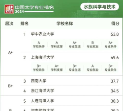 根据提供的信息,以下是2024年中国大学水产科学专业的排名情况: