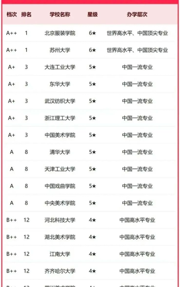 当前服装专业考研的排名情况如下: