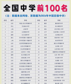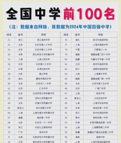 根据提供的信息,以下是2024年中国部分中学的排名情况: