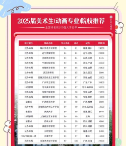 当前,动画专业的大学排名可能会根据不同的标准和来源有所变化。以下是一些在动画专业领域备受认可的大学排名信息,这些信息基于不同时间点的数据,因此排名可能会有所调整: