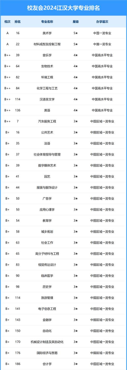 江汉大学在多个专业领域有着较高的排名和评价。根据最近的信息,以下是江汉大学专业档次的部分排名情况: