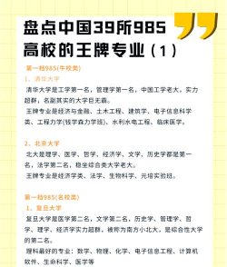 985大学的王牌专业通常意味着这些专业在国内或国际上具有较高的声誉和学术地位,因此它们往往拥有较强的师资力量和优质的教育资源。这些专业毕业生在就业市场上通常具有较强的竞争力,以下是几个例子:
