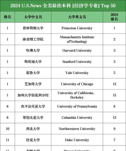以上排名根据2024年U.S.News发布的最新数据整理得出。这些排名反映了各大学在经济学领域的教学和研究实力,以及毕业生在就业市场上的表现。