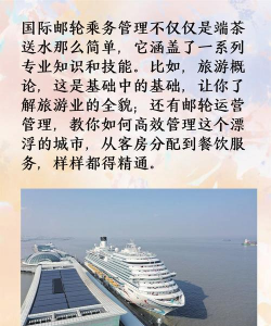 专业培养目标是使学生掌握现代化豪华邮轮管理知识和酒店管理服务礼仪技能,具备一定的英语交流能力、形象气质佳,并能在国际邮轮中从事一线工作的初中级服务人员与管理人员。