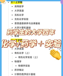3. 药学核心课程,如药物化学、天然药物化学、药剂学、药物分析、药事管理与法规等;