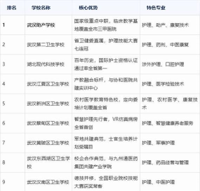 根据提供的信息,以下是武汉地区护理专业专科学校的排名情况: