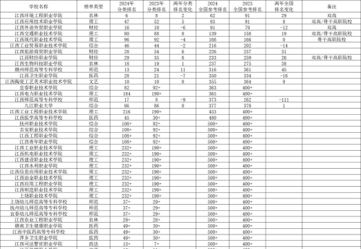 根据提供的信息,以下是2024年江西省本科专业排名的部分情况: