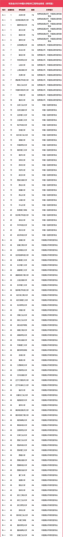 这些排名基于各大学在软件工程领域的教学质量、师资力量、研究成果、就业情况等多个方面的综合评价。清华大学和北京大学在软件工程领域的表现尤为突出,均获得A+评级,显示了它们在该领域的领先地位和卓越实力