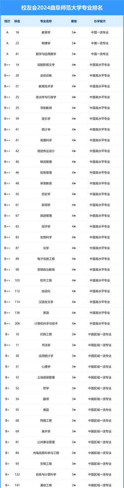 根据提供的信息,以下是曲阜师范大学在2024年各专业排名的一些亮点: