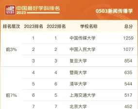 2023年国内新闻传播学专业大学排名