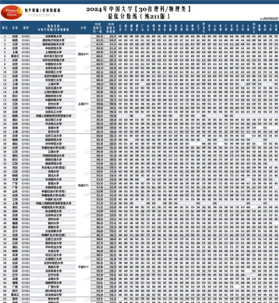 根据提供的信息,以下是2024年理学专业部分高校排名情况: