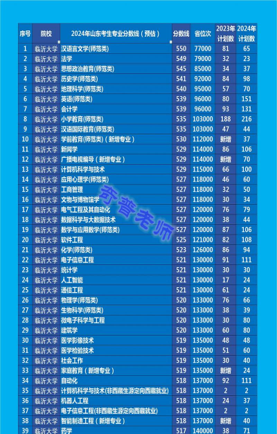 根据提供的信息,以下是2024年临沂大学一些著名专业的排名情况: