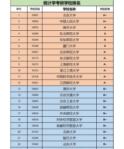 A-类院校:北京师范大学、对外经济贸易大学、复旦大学、上海交通大学、南京师范大学、浙江大学、厦门大学、中南财经政法大学