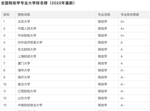 根据提供的信息,以下是部分财税专业大学排名情况:
