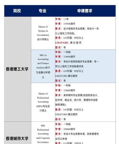 根据最新的排名信息,香港读研会计专业的排名如下: